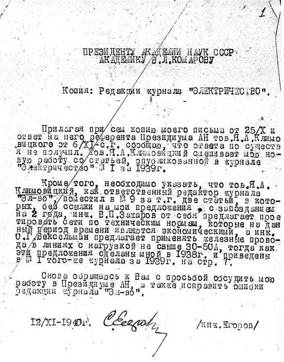 Комаров Владимир Леонтьевич. С. Г. Егоров, инженер.