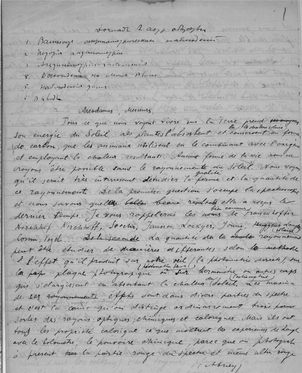 Ганский Алексей Павлович. Доклад в Астрономическом обществе об актинометрии.