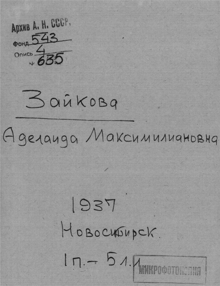 Зайкова Аделаида Максимилиановна. Новосибирск.