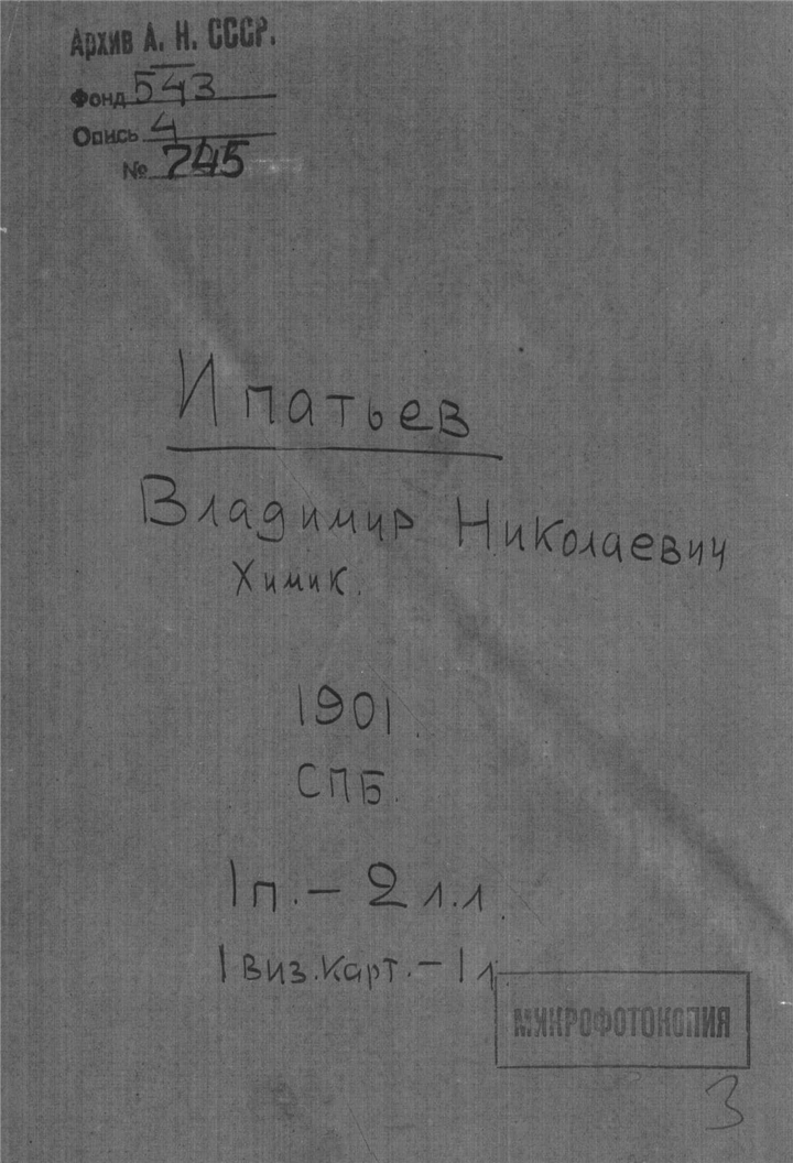 Ипатьев Владимир Николаевич. Химик. СПБ.