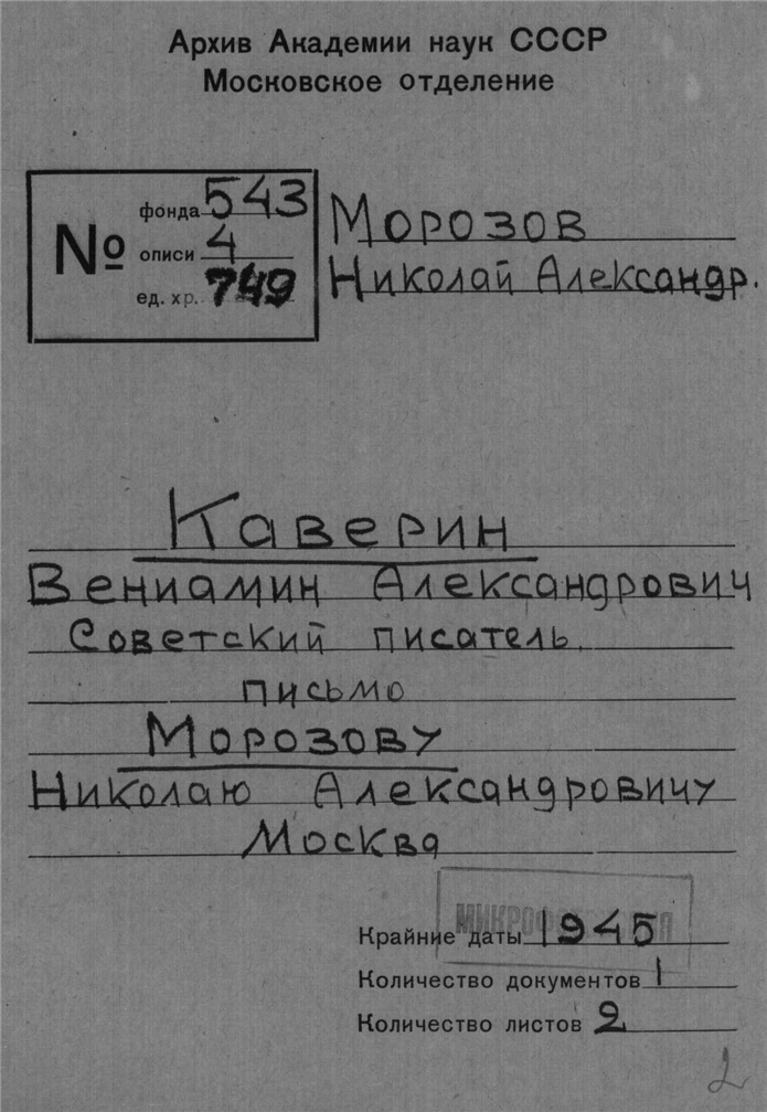 Архив почетного академика Н.А.Морозова