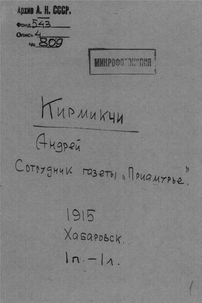 Кирмикчи Андрей. Сотрудник газеты «Приамурье». Хабаровск.