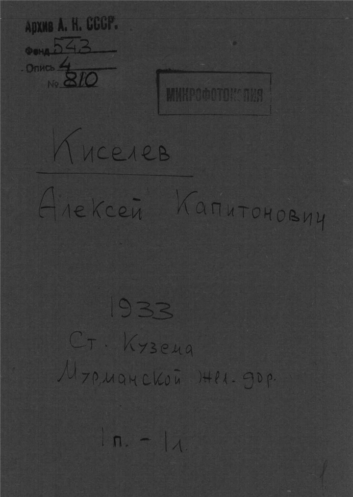 Киселёв Алексей Капитонович. Ст. Кузема Мурманской ж. д.