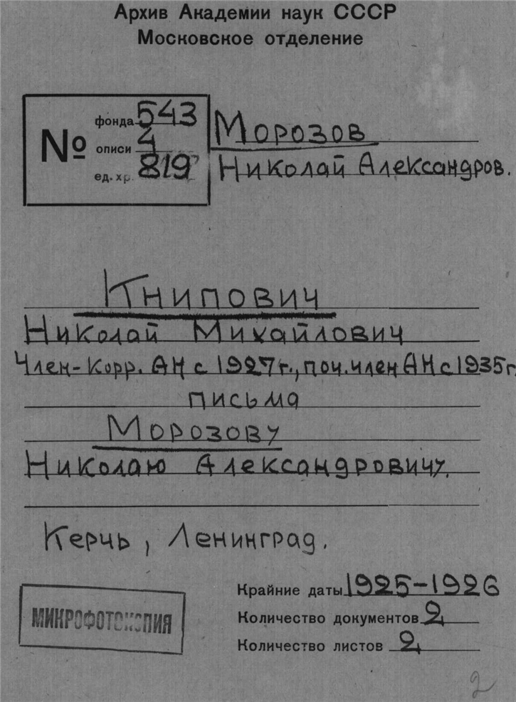 Архив почетного академика Н.А.Морозова
