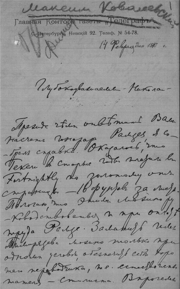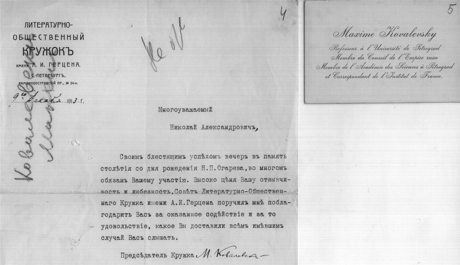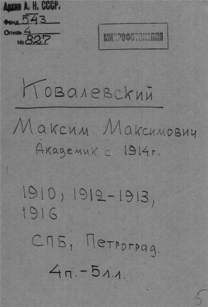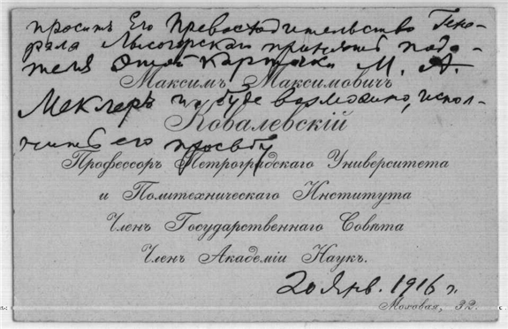 Ковалевский Максим Максимович. Академик с 1914 г. СПБ, Петроград.