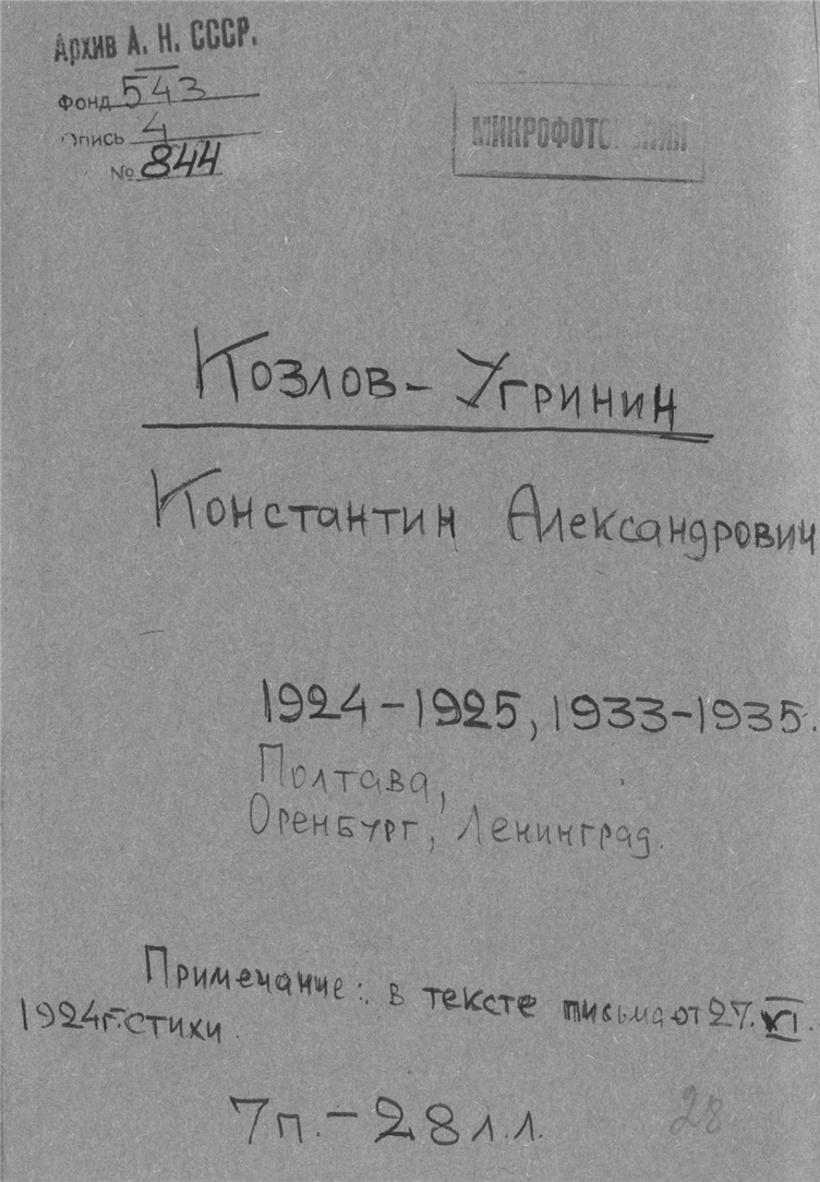 Козлов-Угринин Константин Александрович. Полтава, Оренбург, Ленинград.