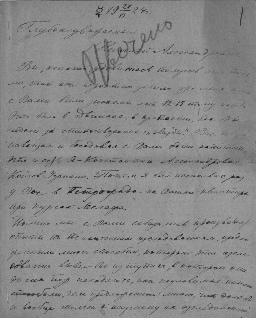 Архив почетного академика Н.А.Морозова