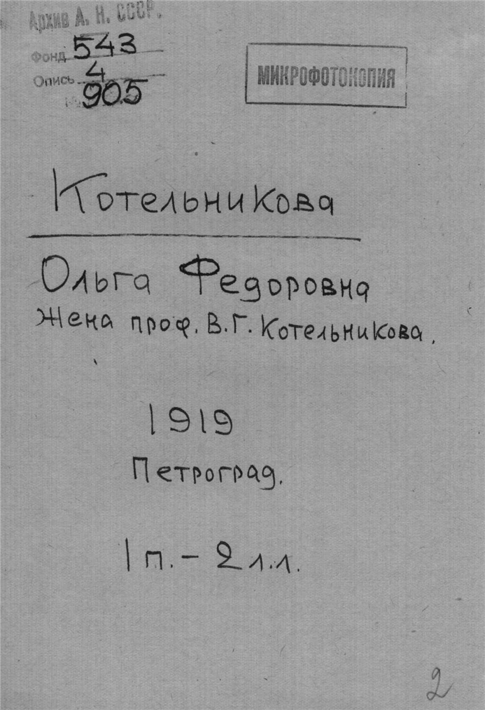 Котельникова Ольга Фёдоровна. Жена проф. В. Г. Котельникова. Петроград.