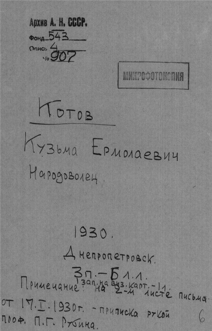 Котов Кузьма Ермолаевич. Народоволец. Днепропетровск.