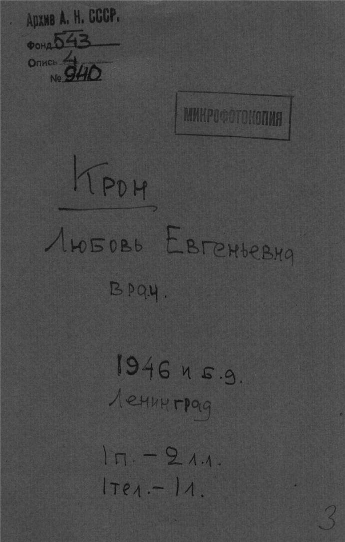 Крон Любовь Евгеньевна. Врач. Ленинград.