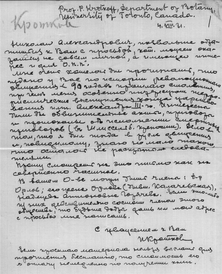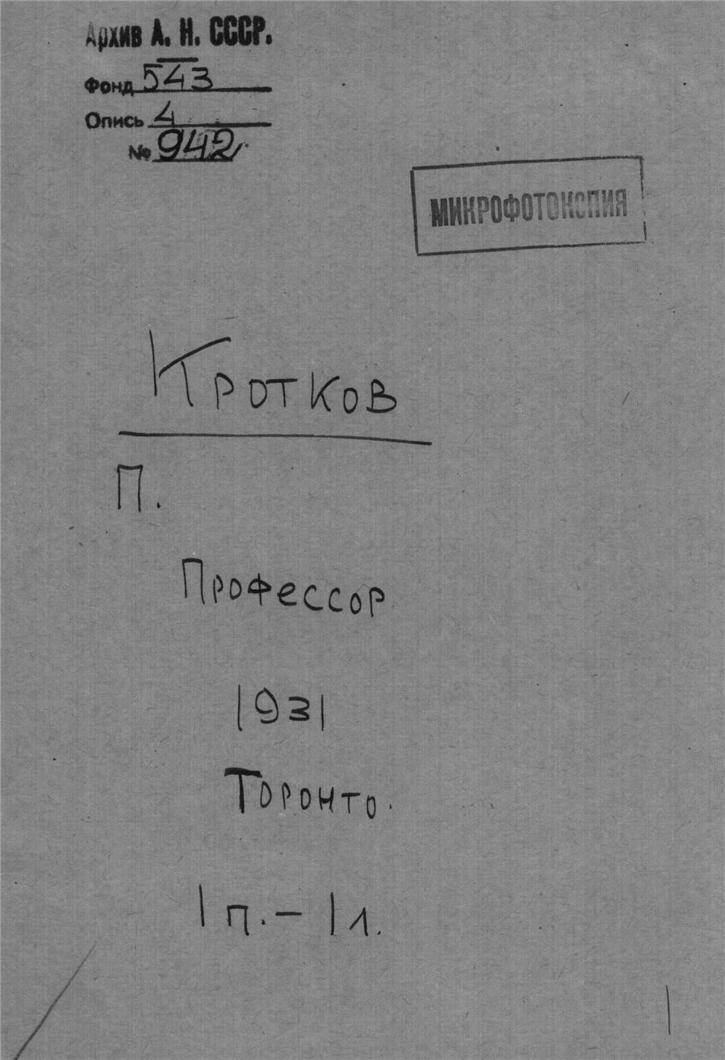 Кротков П. Профессор. Торонто.