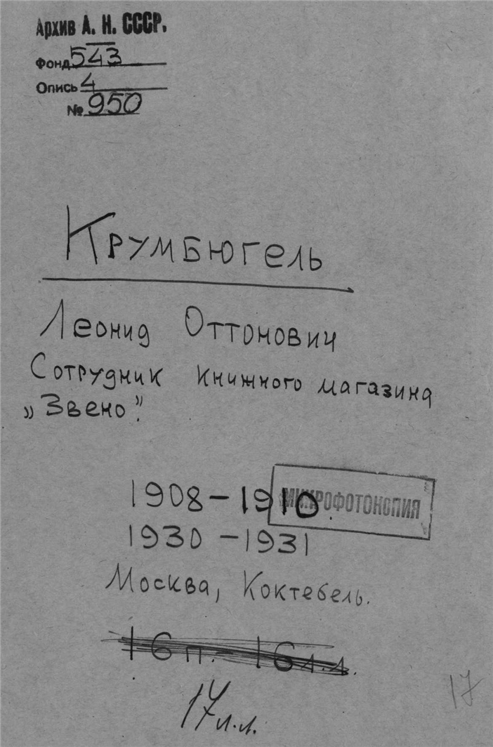 Крумбюгель Леонид Оттонович. Сотрудник книжного магазина «Звено». Москва, Коктебель.