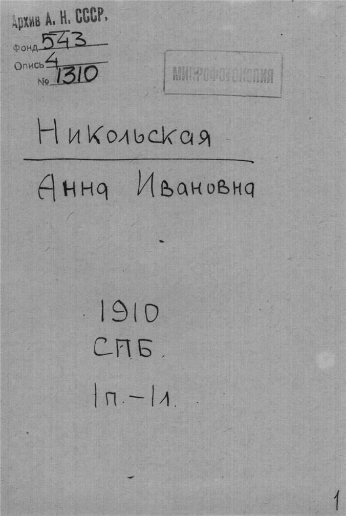 Никольская Анна Ивановна. СПБ.
