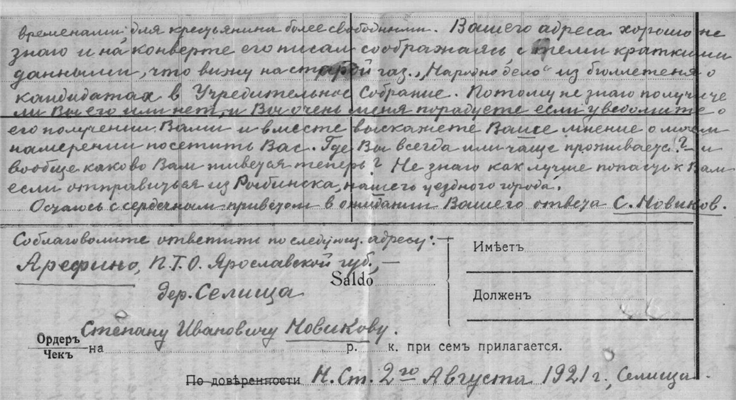 Новиков Степан Иванович. Крестьянин. Арефино Ярославской губ.