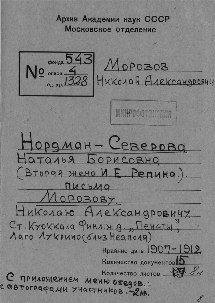 Архив почетного академика Н.А.Морозова