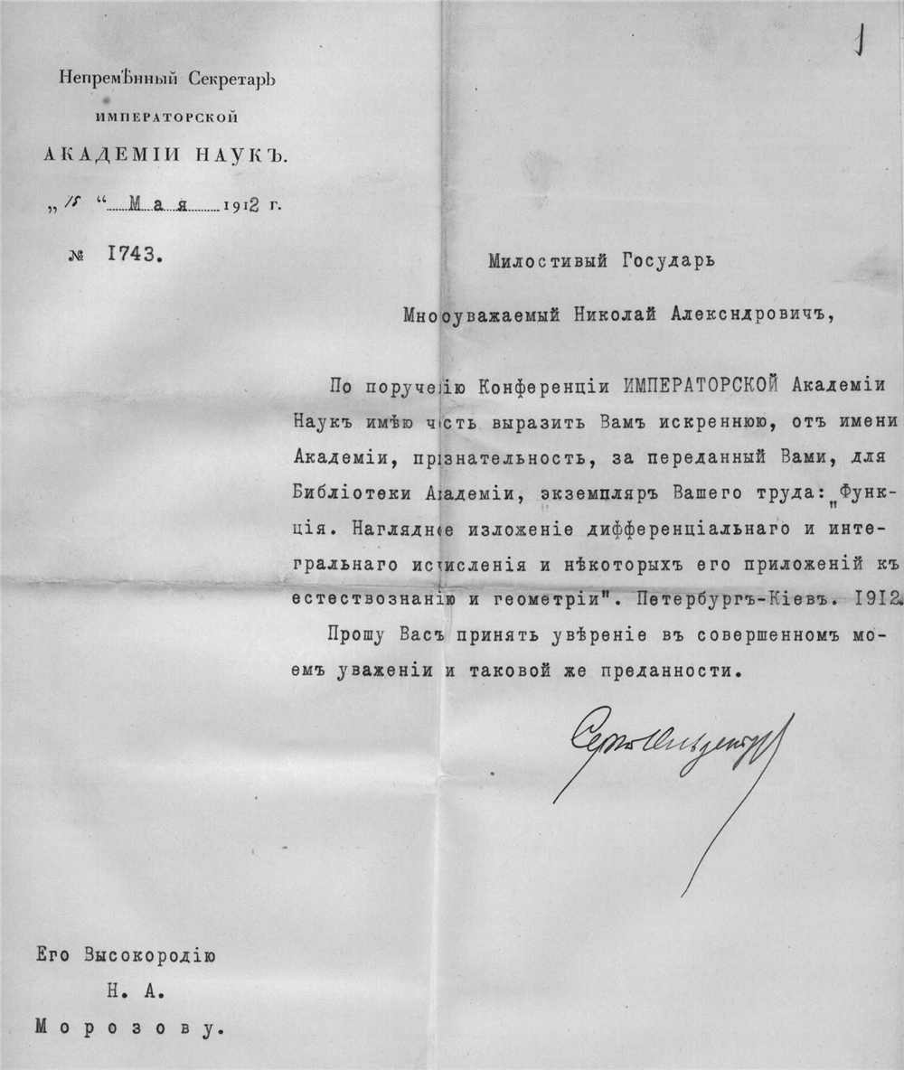 Архив почетного академика Н.А.Морозова
