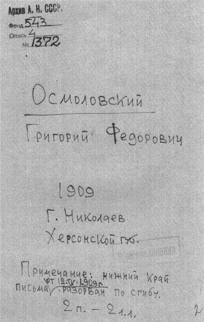 Осмоловский Григорий Фёдорович. Николаев Херсонской губ.