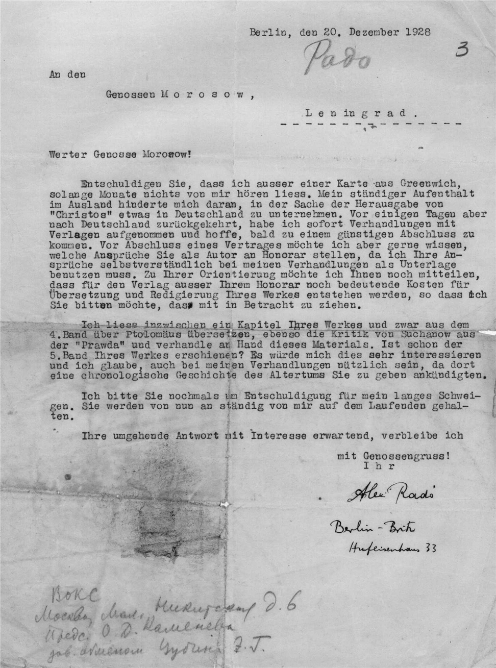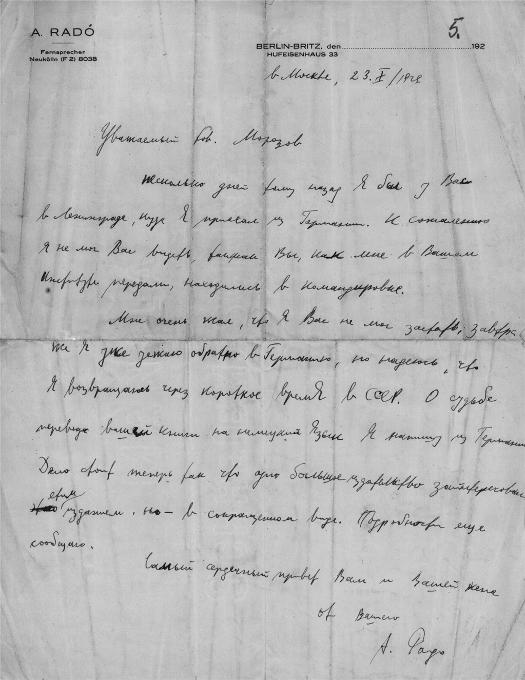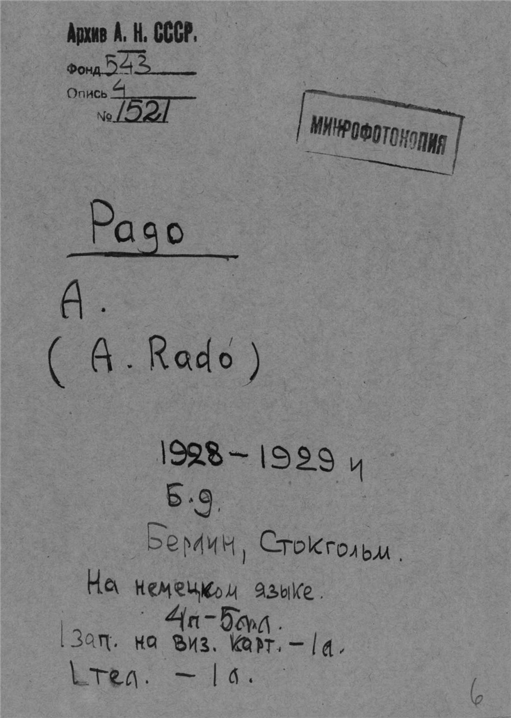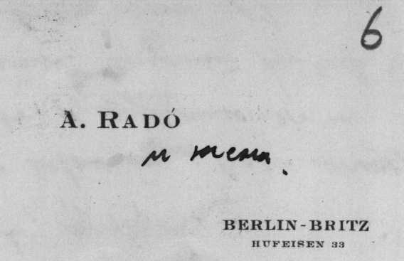 Радо А. Берлин, Стокгольм. На немецком языке.