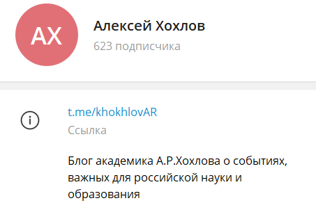 Вице-президент РАН А.Р Хохлов в своем новом паблике на платформе Telegram о предложениях по корректировке научной политики: