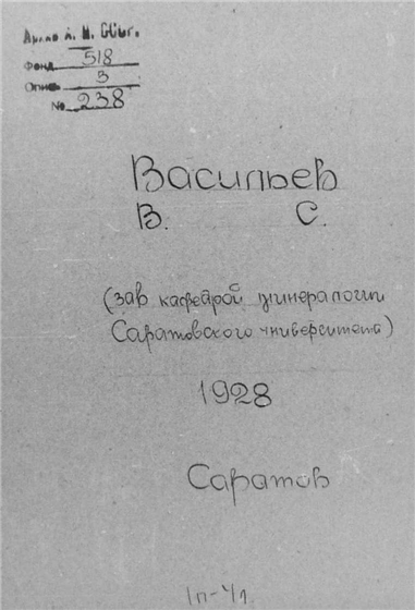 Васильев В. С. (зав. кафедрой минералогии Саратовского университета). Саратов.