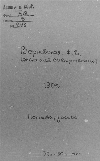 Вернадская Н. Е. (жена акад. В. И. Вернадского). Полтава, Москва.