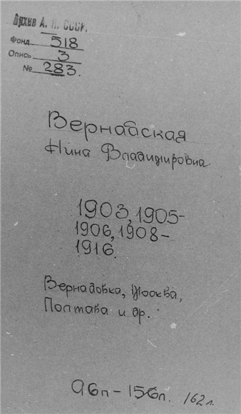Вернадская Нина Владимировна. Вернандовка, Москва, Полтава и др.