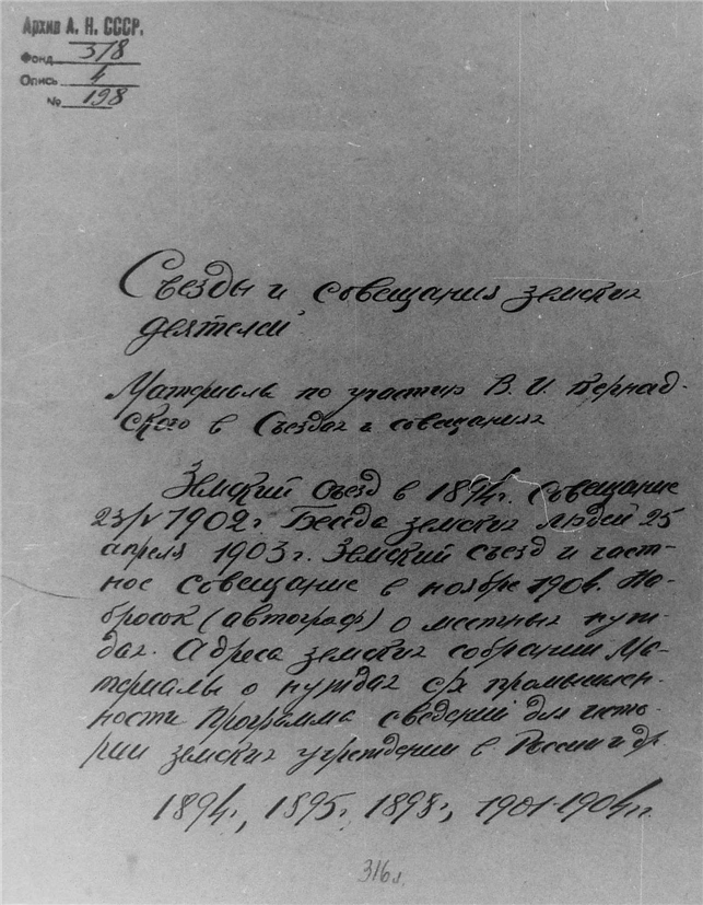 | Название: | Съезды и совещания земских деятелей. Материалы по участию Вернадского в съездах и совещаниях. |